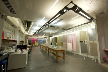 במרכז ניתן להתרשם מהאפשרויות הרבות לעיצוב בחללים בבית והמגוון הרחב של המוצרים של טקסטורות וגוונים.