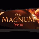 מגנום טריפל: שלגון שמנת משובחת בטעם שוקולד בציפוי שוקולד לבן מעולה ושוקולד חלב מעולה עם ריפל בטעם שוקולד מריר.